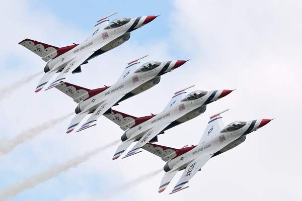Returning to the RAF Waddington International Airshow after 11 years (they last flew at the show in 2000) were the USAF Thunderbirds demonstration team, who were also making this air show their only UK appearance for 2011.